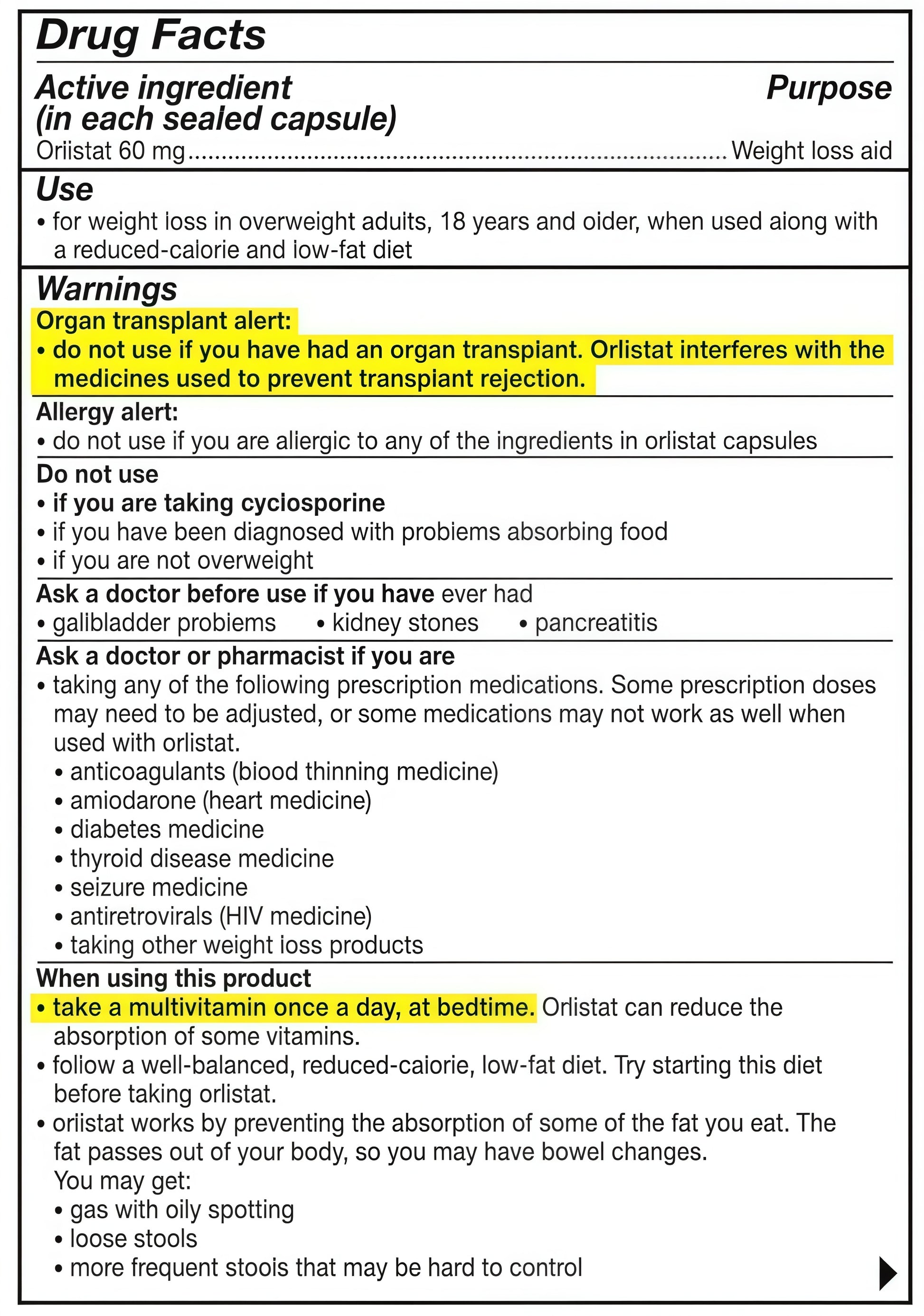 lt has decades of clinical data supporting its safety when used as directed. Side effects are mild, diet-related(and avoidable with low-fat meals), and it doesn't cause jitters, insomnia, or mood swings common withstimulants.